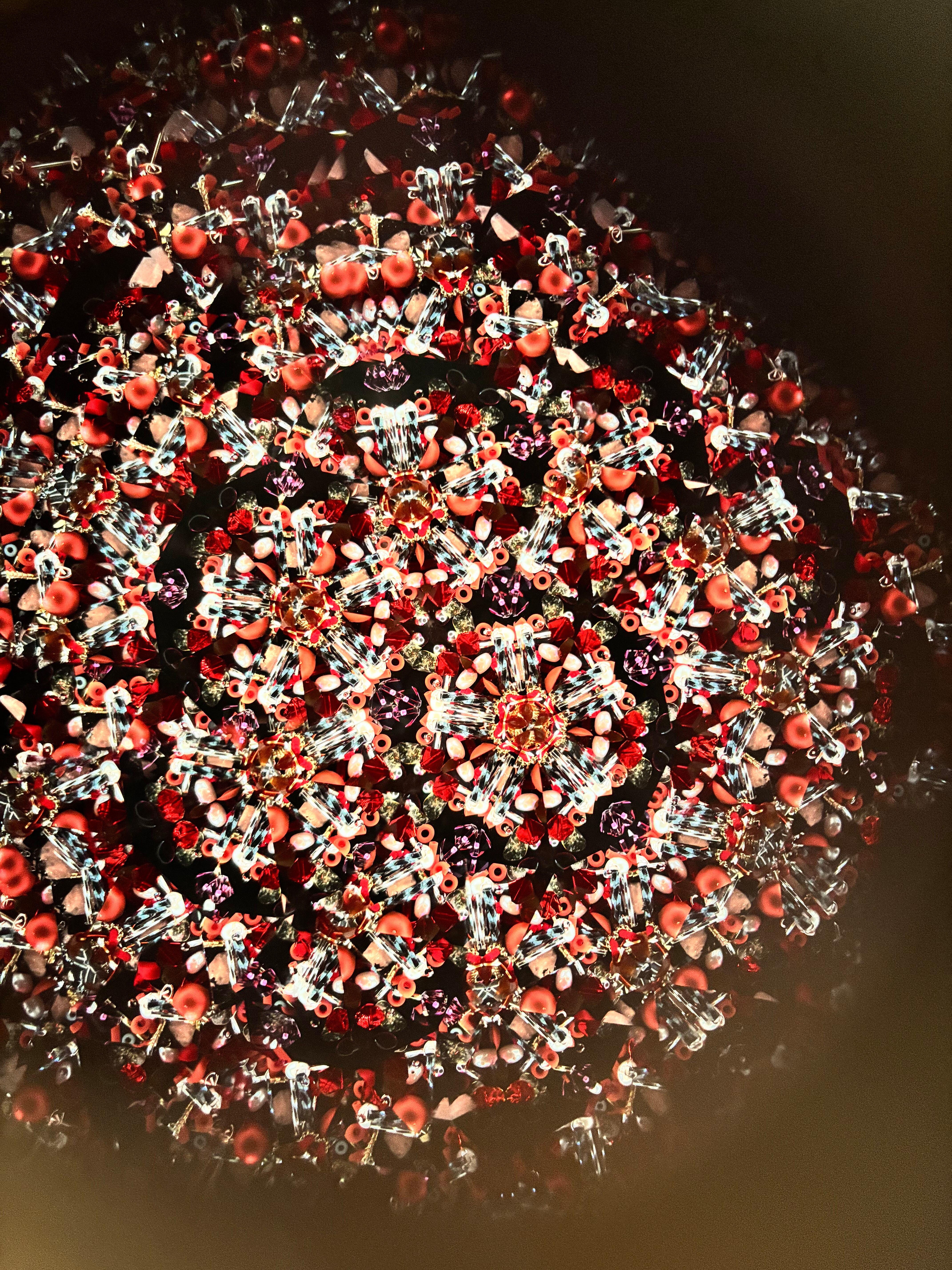 小さなホールから覗くと、時間も映像もゆっくり流れていきます。